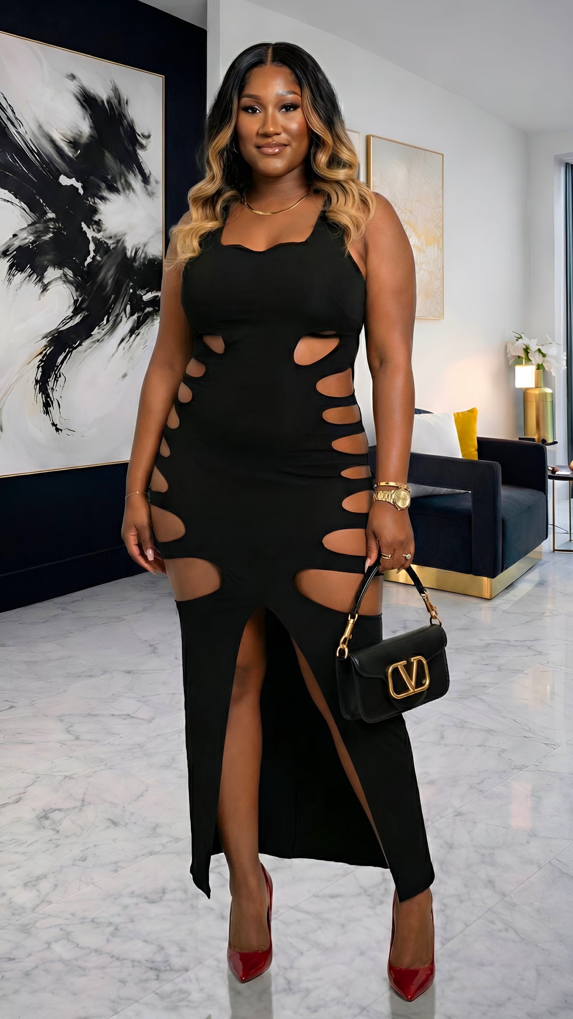 Turn heads the moment you step in the room. Our “All Eyes On Me” Maxi Dress is crafted from a buttery-soft, seamless stretch fabric that hugs every curve in all the right places. The bold laser-cut details create a sultry, sculpted look that’s impossible to ignore.